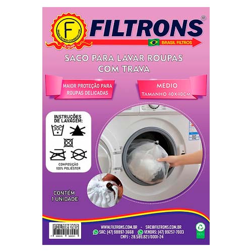 Lavanderia Saco de Poliéster branco p/ lavar roupas 40cm x 40cm Filtrons